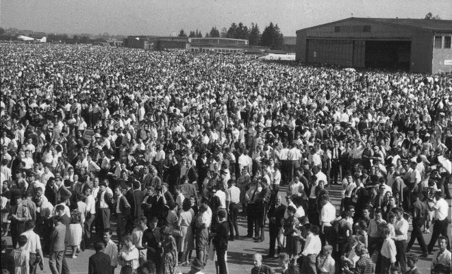 Am 24. September 1961 findet ein Flugtag der Superlative statt. Waren bereits ein Jahr zuvor 200.00 Besucher durch die Eingänge geströmt, so konnte man am Abend des 24. September annähernd 500.000 zählen. Die Zuschauer standen bereits am Vorabend vor den Toren um sich gute Aussichtspunkte zu sichern, ein Verkehrschaos blieb trotz der noch nicht so zahlreichen Kfz, nicht aus, keiner hatte mit dem Ansturm gerechnet. Im Osten des Fliegerhorstes wurde der gesmte Zaun entfernt um den Menschenmassen den Weg zu ebnen. Nie wieder sollte die Luftwaffe einen derartige Veranstaltung erleben.