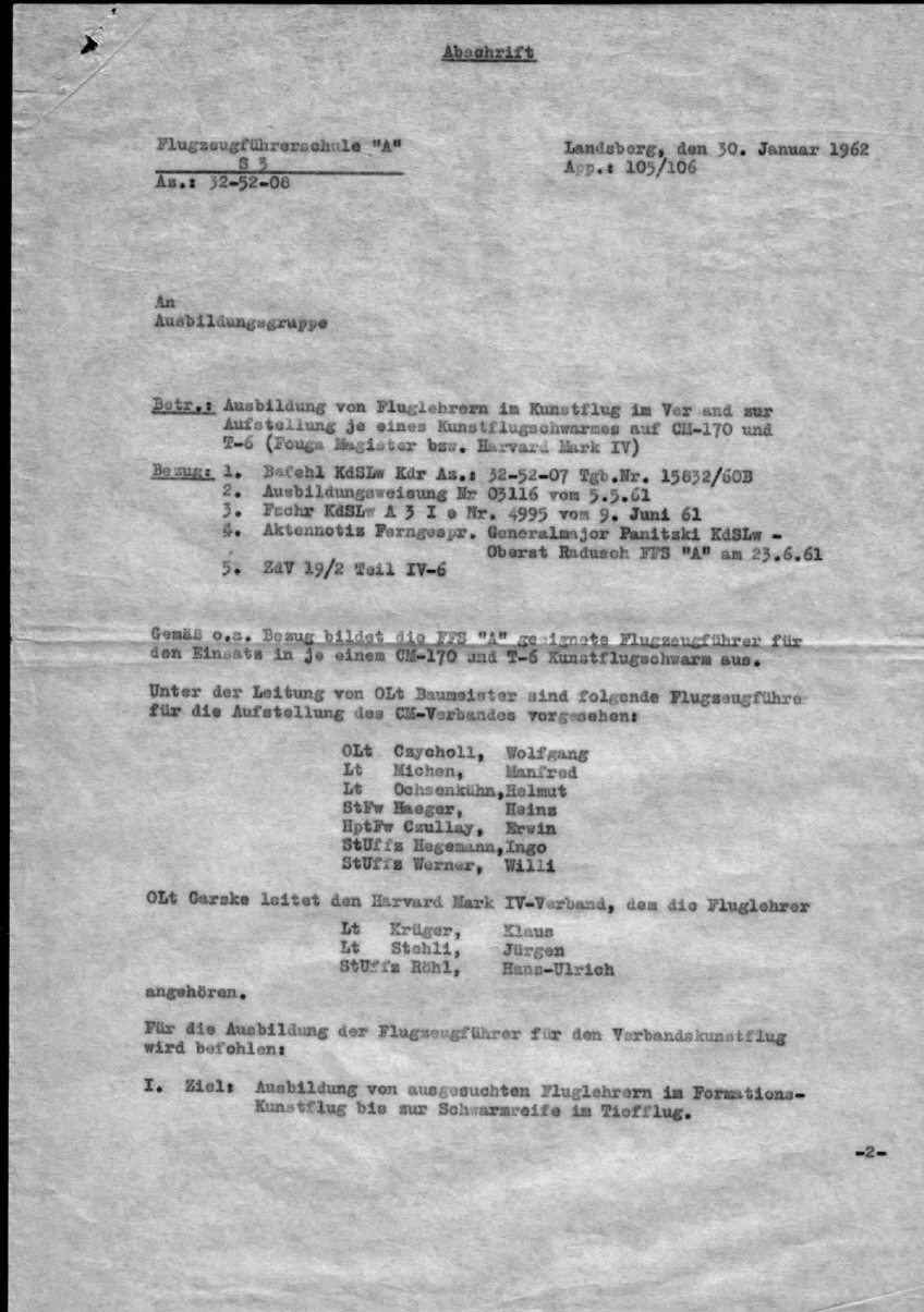 Nachdem es 1962 einen offiziellen Aufstellungsbefehl zur Bildung von Kunstflugteams gab, kamen noch andere Piloten hinzu.