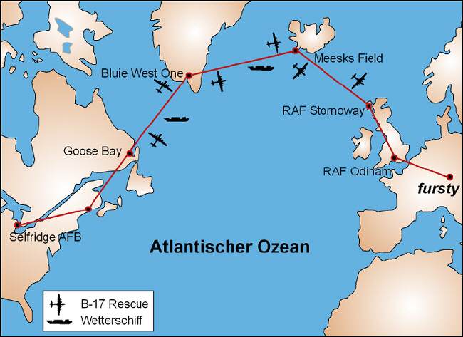 "Fox able One" Am 12. Jui 1948 überqueren 16 F-80 der 56th Fighter Group aus Selfridge, Michigan über Gosse Bay und den Hebriden den Atlantik und landen am 25. Juli 1948 in Fürstenfeldbruck. Begleited wurden sie von 2 B-17 pro Streckenabschnitt mit Rettungsbooten, sowie zusätzlich einer B-29 als Wetterstation. Technische Untersützung leisteten 2 C-54 und eine C-47.