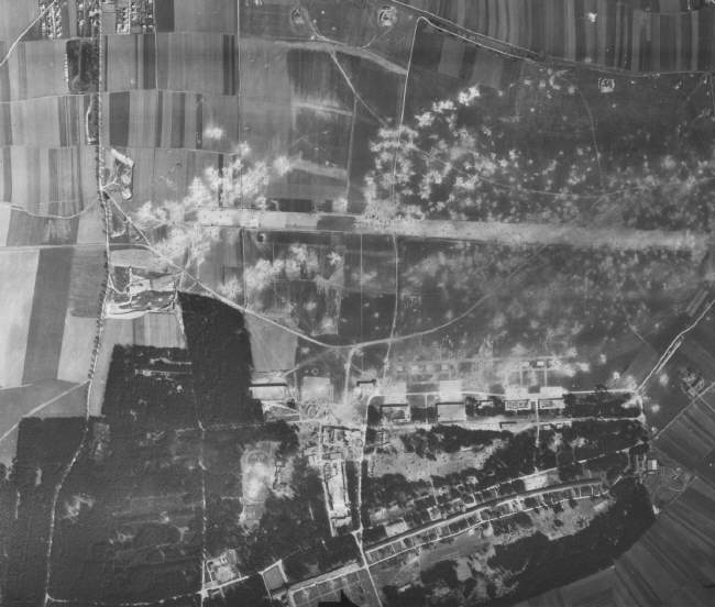 Am 9. April 1945 bombardierten 338 B-17 der 1. Luftdidvison, 8. Luftwaffengruppe 867 den Flugplatz. Dabei wurden 50 direkte Treffer auf Startbahn, Hallen und andere Einrichtungen verzeichnet. Das war er einzige ernsthafte Angriff auf den Platz, die Alliierten wollten durch den Angriff verhindern, das der Platz für den Einsatz von Düsnejägern vorbereitet wurde.